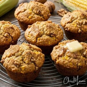 Los muffins de elote con nuez son una versión individual y práctica del tradicional pan de elote. Su textura húmeda, el dulzor natural del elote y la leche condensada, junto con el toque crujiente de la nuez, los convierten en un bocado irresistible para cualquier momento del día.